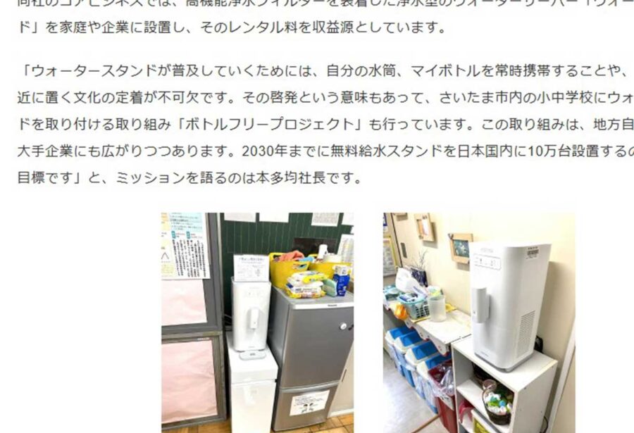 ウォータースタンドSDGsメディア ボトルフリープロジェクト|水道直結ウォーターサーバー ウォータースタンドの提供を通してマイボトル文化の醸成とペットボトル削減に取組みます