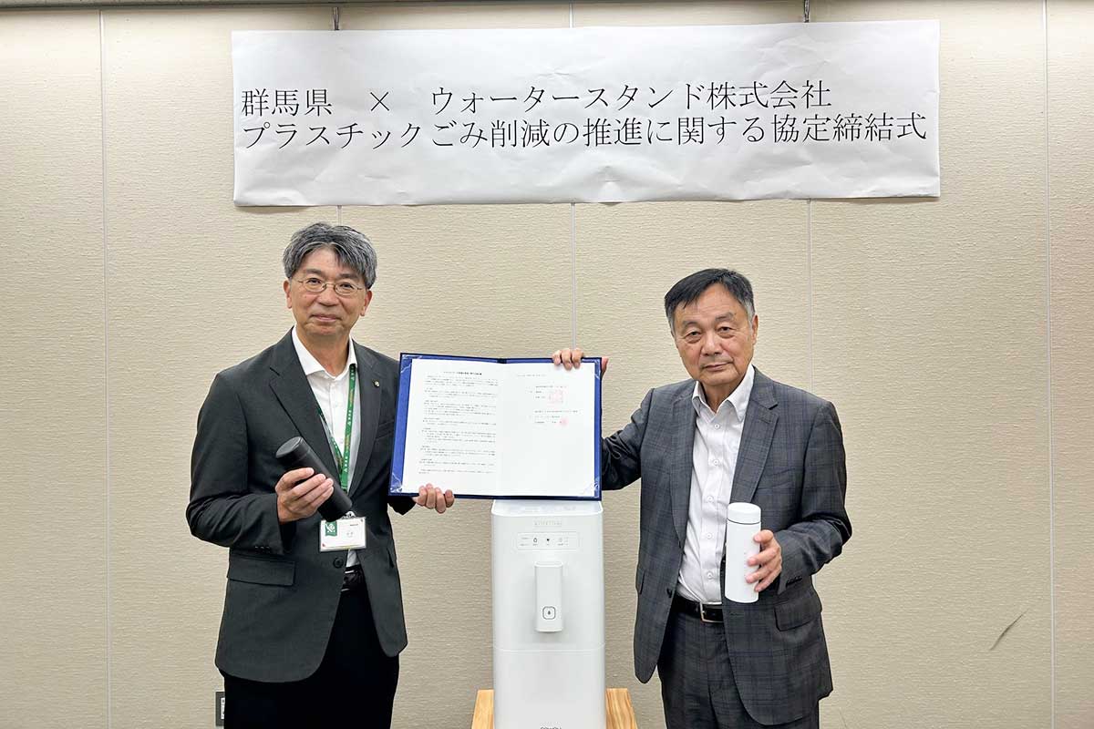 ウォータースタンド株式会社(以下当社)は群馬県と「プラスチックごみ削減の推進に関する協定(以下本協定)」を締結しました。
