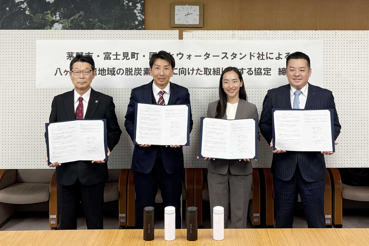 ウォータースタンド株式会社(以下当社)は長野県茅野市・富士見町・原村と「脱炭素社会実現に向けた取組に関する協定(以下本協定)」を締結しました。